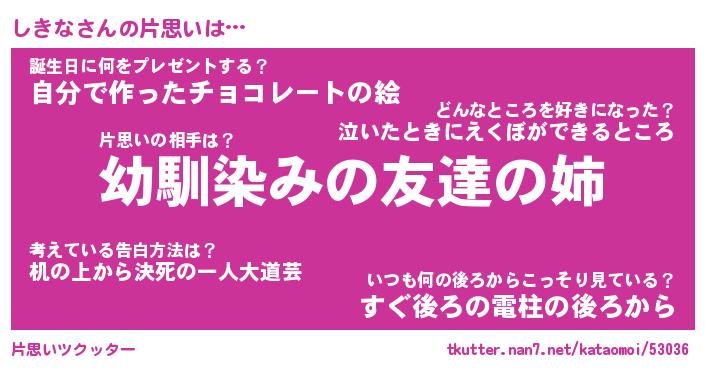 | ヘコむあだ名 | 『しきっふぃ~』『つくし』 |