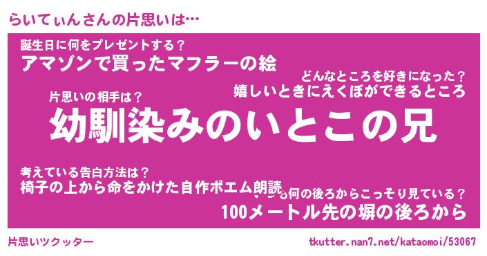 | ヘコむあだ名 | 『らいもー』『なまこ酢』『らい太郎』 |
