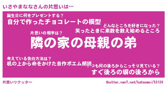 | 胡散臭い通販商品みたいなあだ名 | 『必ず成功するブレスレット…その名も「いさやまなな」』 |