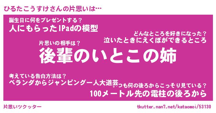 | 伝説のあだ名 | 『封印されしスナイパーひるたこうすけ』 |