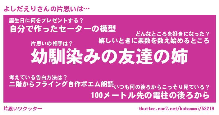 | 伝説のあだ名 | 『伝説のスナイパーよしだえり』 |