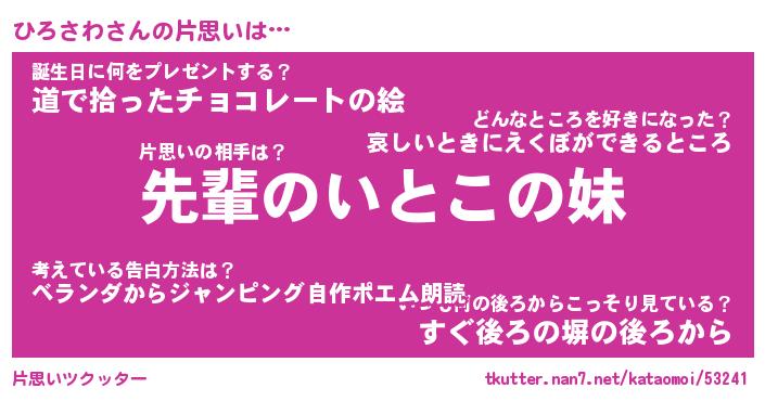 | ヒーロー風カッコイイあだ名 | 『スーパーヒロサワ』『天弓騎士ヒロ』 |