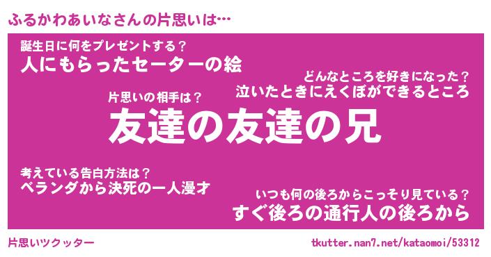 | 伝説のあだ名 | 『封印されしスナイパーふるかわあいな』 |