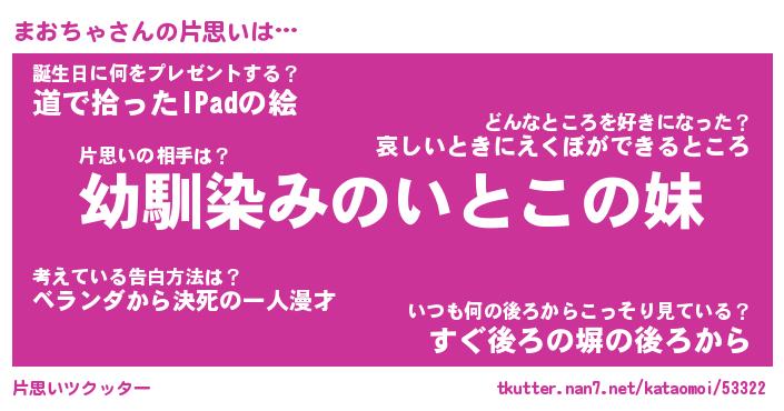 | 意味不明あだ名 | 『ペロリンまおちゃ』『永久保存まおちゃ』 |