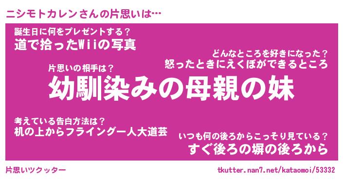 | 意味不明あだ名 | 『ペロリンニシモトカレン』 |