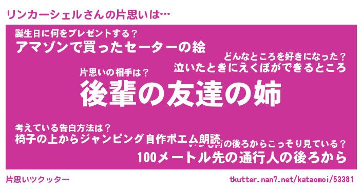| ポケモン風あだ名 | 『リンチュウ』『リンカダネ』 |