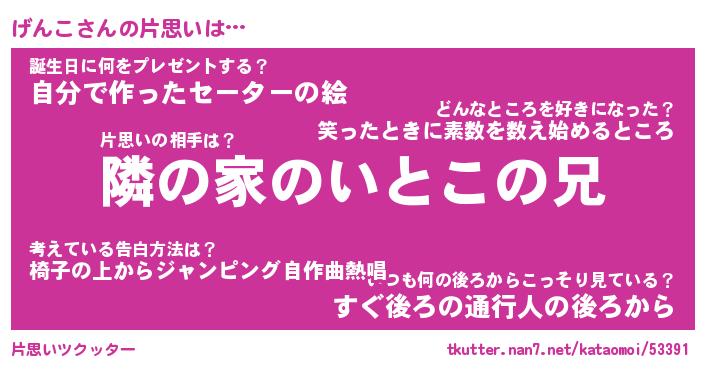 | ポケモン風あだ名 | 『ゲンチュウ』『ゲンコダネ』 |