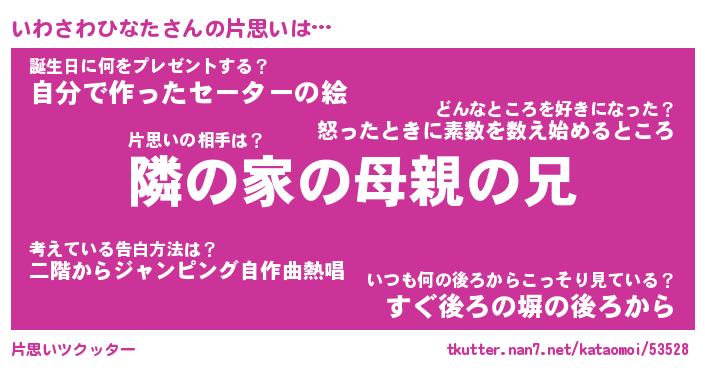| ヘコむあだ名 | 『いわにー』『酢こんぶ』『いわっぺ』 |