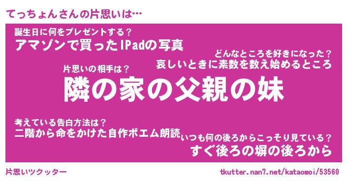 | 男性向けラノベタイトル風あだ名 | 『てっちょんの憂鬱』 |