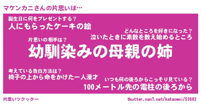 | 男性向けラノベタイトル風あだ名 | 『マケンカニの憂鬱』 |