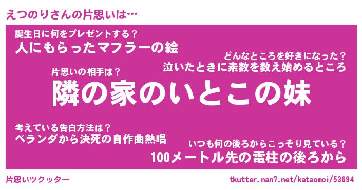 | 男性向けラノベタイトル風あだ名 | 『えつのりの憂鬱』 |