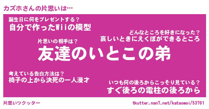 | ヘコむあだ名 | 『カズにゅー』『つくし』『カズを』 |