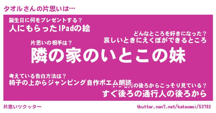| 男性向けラノベタイトル風あだ名 | 『タオルの憂鬱』 |