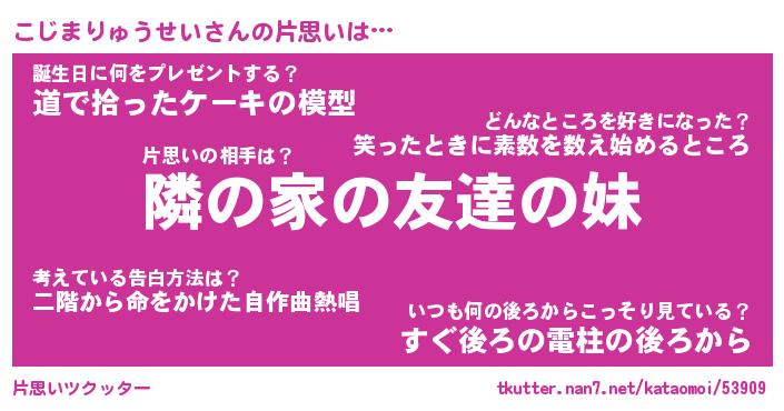 | 男性向けラノベタイトル風あだ名 | 『こじまりゅうせいの憂鬱』 |