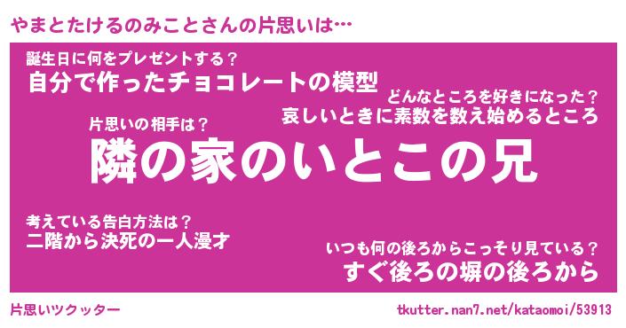 | ツイッター | やまとたけるのみことさんのツイッターID『tsukushi_kun』 |