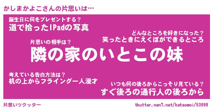 | 胡散臭い通販商品みたいなあだ名 | 『必ず成功する霊験あらたかなお札…その名も「かしまかよこ」』 |