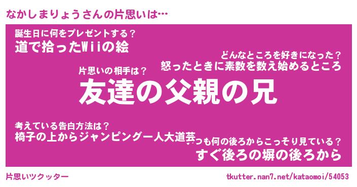 | 胡散臭い通販商品みたいなあだ名 | 『億万長者になれる水晶球…その名も「なかしまりょう」』 |