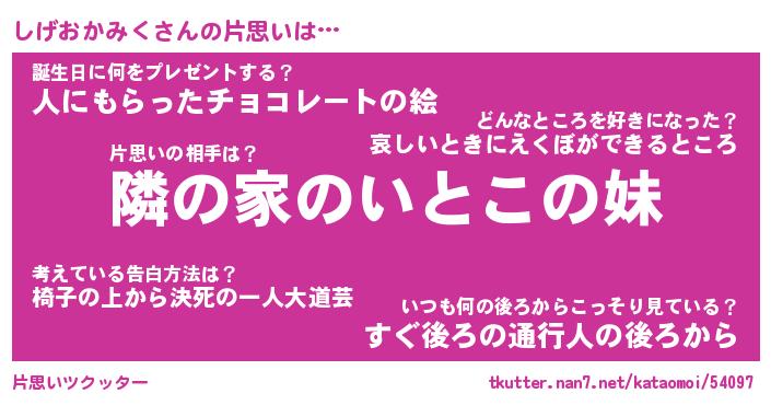 | 胡散臭い通販商品みたいなあだ名 | 『必ず成功する水晶球…その名も「しげおかみく」』 |