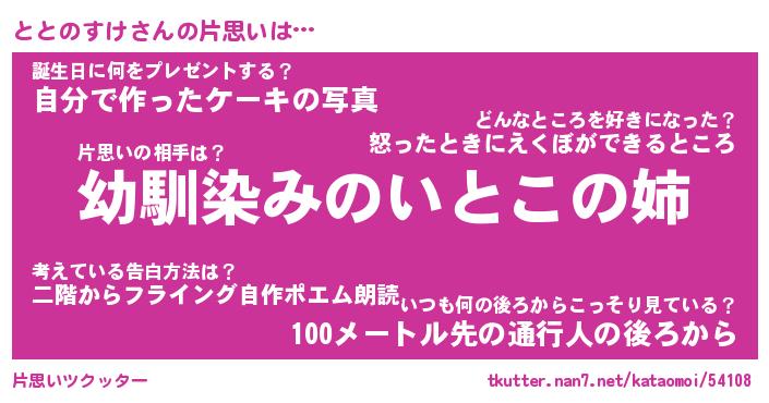 | 男性向けラノベタイトル風あだ名 | 『ととのすけの憂鬱』 |