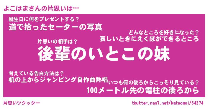| ヘコむあだ名 | 『よこもー』『豆乳』『よこっ子』 |