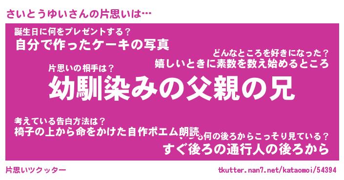 | 女子向けラノベタイトル風あだ名 | 『(仮)さいとうゆいのやんごとなき事情』 |