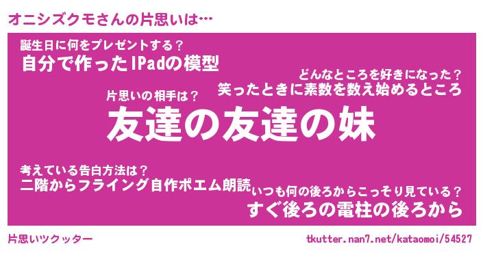 | ヘコむあだ名 | 『オニもー』『つくし』『オニを』 |