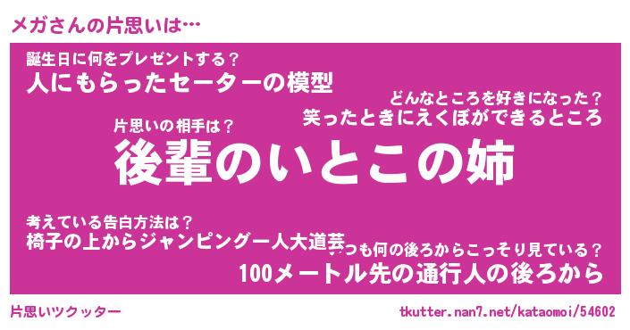 | ヘコむあだ名 | 『メガもー』『レバニラ』『メガお』 |