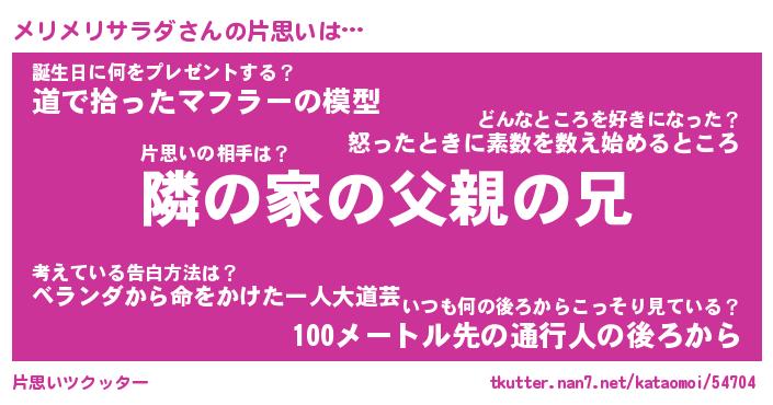| 男性向けラノベタイトル風あだ名 | 『メリメリサラダの憂鬱』 |