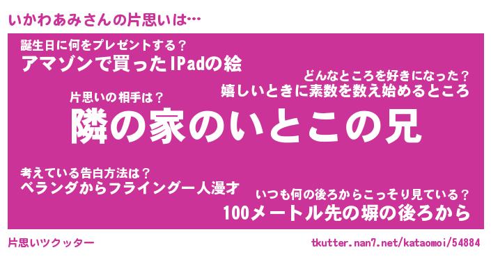 | 女子向けラノベタイトル風あだ名 | 『(仮)いかわあみのやんごとなき事情』 |