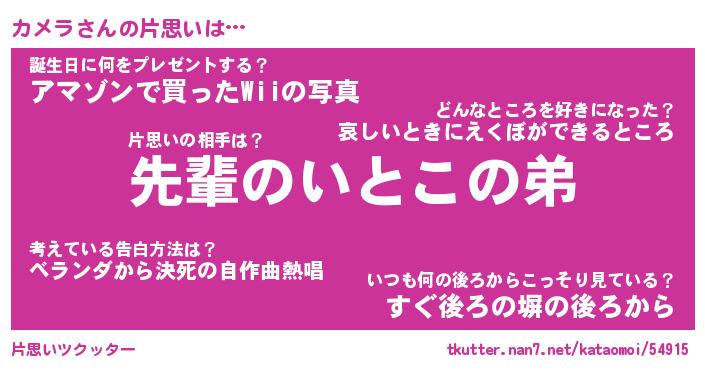 | 意味不明あだ名 | 『ペロリンカメラ』『カメラフォーエバー』 |