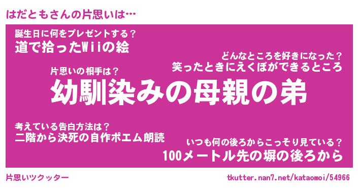 | ヘコむあだ名 | 『はだにー』『牛乳』『はだっぺ』 |