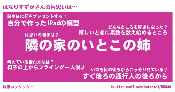 | 男性向けラノベタイトル風あだ名 | 『はなりすずかの憂鬱』 |