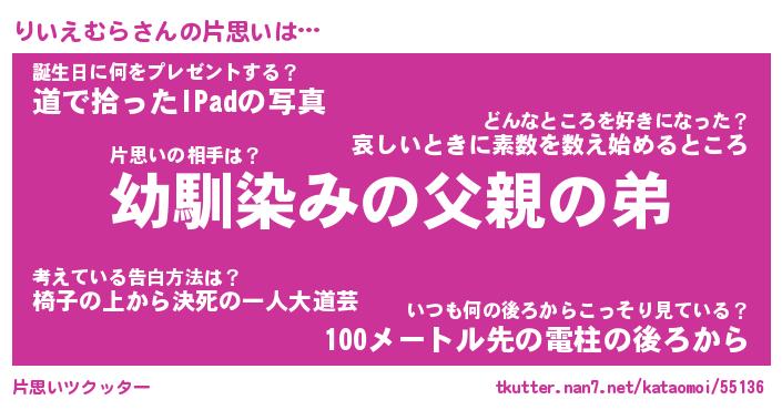 | 男性向けラノベタイトル風あだ名 | 『りいえむらの憂鬱』 |