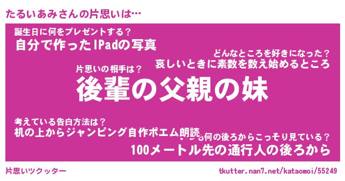 | ヘコむあだ名 | 『たるにゅー』『つくし』『たる太郎』 |
