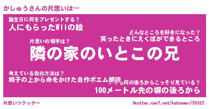 | 男性向けラノベタイトル風あだ名 | 『かしゅうの憂鬱』 |