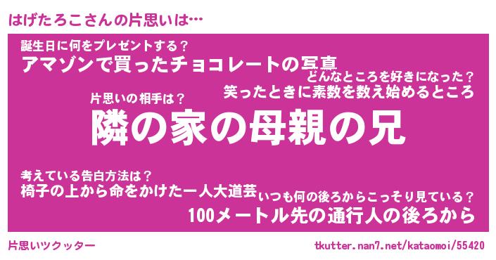 | 意味不明あだ名 | 『ペロリンはげたろこ』 |