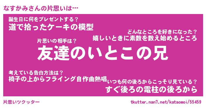 | ヘコむあだ名 | 『なすもー』『豆乳』『なす太郎』 |
