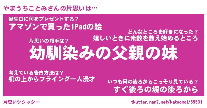 | 胡散臭い通販商品みたいなあだ名 | 『必ず成功する水晶球…その名も「やまうちことみ」』 |