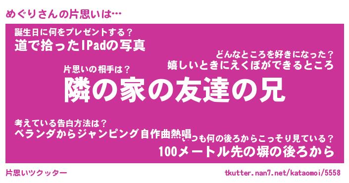 | ヘコむあだ名 | 『めぐっふぃ~』『つくし』 |