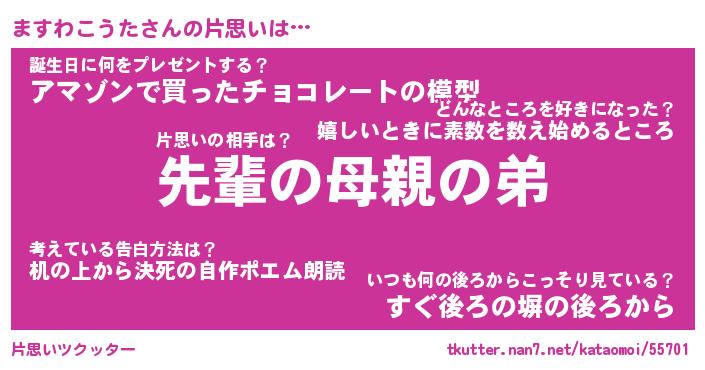 | ヒーロー風カッコイイあだ名 | 『スーパーマスワコウタ』『魔戒騎士マス』 |