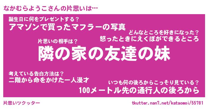 | 男性向けラノベタイトル風あだ名 | 『なかむらようこの憂鬱』 |
