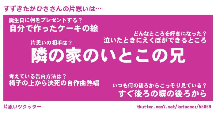 | 男性向けラノベタイトル風あだ名 | 『すずきたかひさの憂鬱』 |