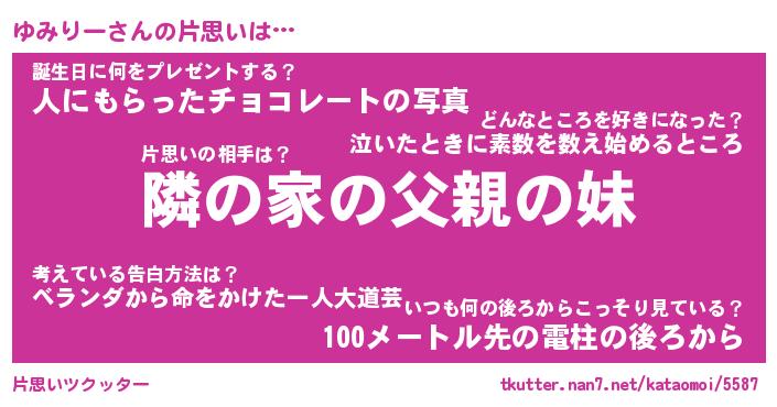 | 意味不明あだ名 | 『ペロリンゆみりー』『永久保存ゆみりー』 |