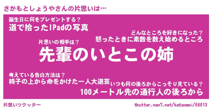 | 胡散臭い通販商品みたいなあだ名 | 『モテモテ間違いなし水晶球…その名も「さかもとしょうや」』 |
