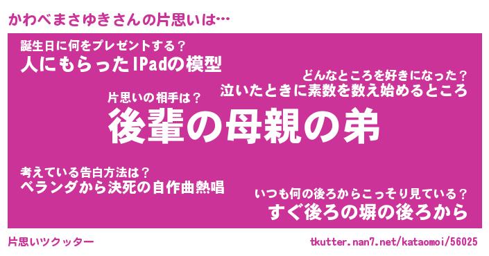 | 胡散臭い通販商品みたいなあだ名 | 『億万長者になれるブレスレット…その名も「かわべまさゆき」』 |