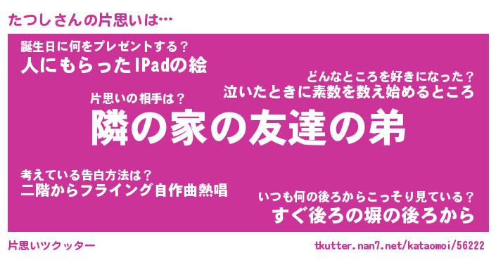| 男性向けラノベタイトル風あだ名 | 『たつしの憂鬱』 |