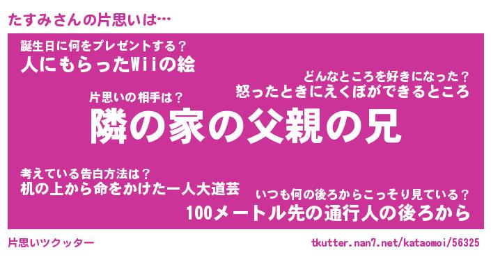 | 意味不明あだ名 | 『ペロリンたすみ』『たすみフォーエバー』 |