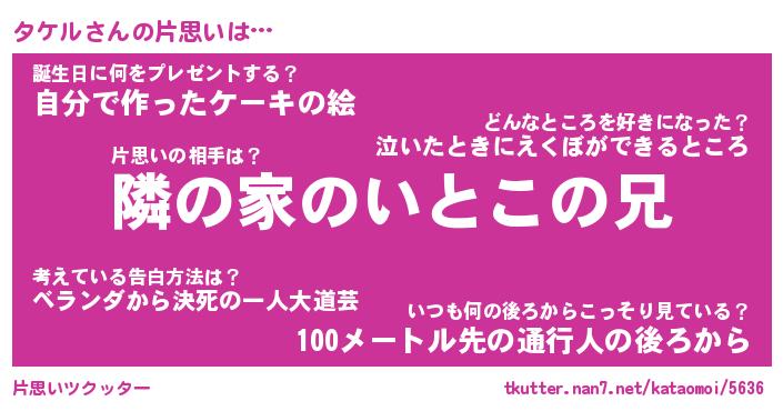 | ヘコむあだ名 | 『タケにゅー』『つくし』 |