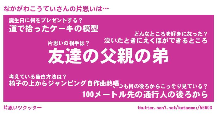 | 女子向けラノベタイトル風あだ名 | 『誰かこのなかがわこうていを説明してください! ~契約から始まるウェディング~』 |