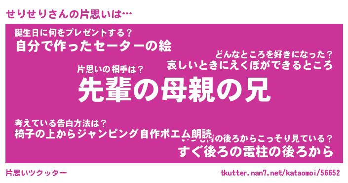 | 2回繰り返すあだ名 | 『せりせり』『せせりり』『いらいら』 |